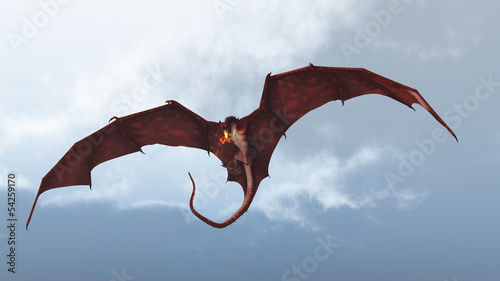 © Algol, Obraz premium Czerwony smok atakuje z pochmurnego nieba
