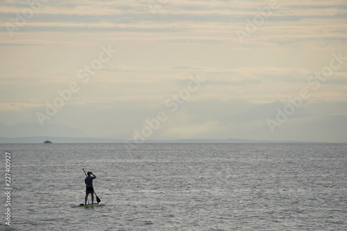 © Fateme, Naklejka premium człowiek na desce wiosła na morzu