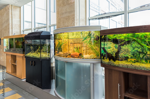 © Art Event, Obraz premium Cztery akwaria stoją na podporach
