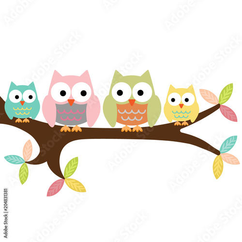© sa6kaa, Fototapeta premium Cztery sowy na gałęzi