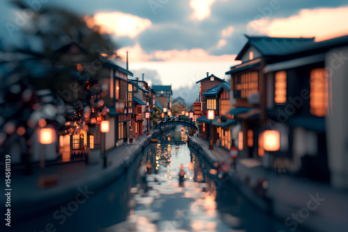 © mamio, Fototapeta premium 水路のある温泉街と古い街並み(3D)