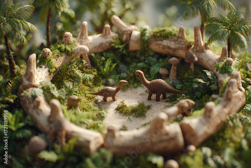 © mamio, Obraz premium ジャングルと恐竜たち(3D)
