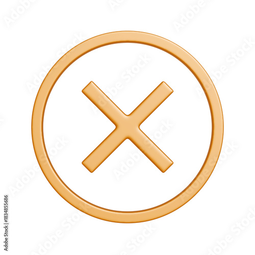 Obraz premium 黄色い丸形の消去マークのアイコン。リッチな質感の3Dイラスト