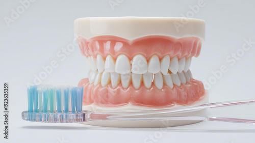 Obraz premium 清潔な歯と歯茎の3Dモデル|歯科治療・口腔ケアイメージ