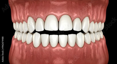 Obraz premium 上下の歯列と咬合状態を示す歯科用3Dレンダリング、歯科矯正と口腔衛生の概念