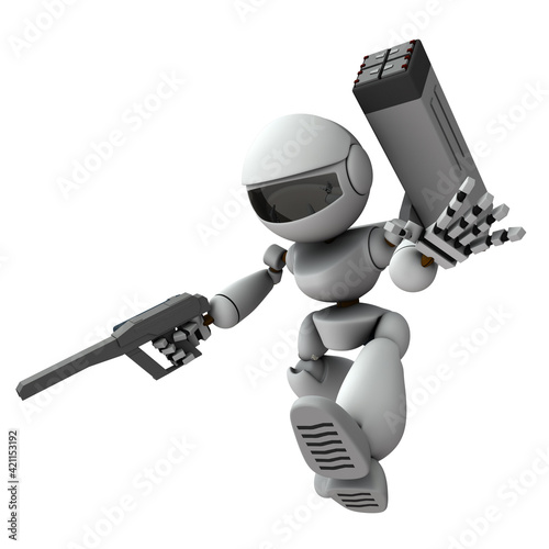 © CYCLONE, Naklejka premium 急降下して侵攻する人工知能のロボット兵。3Dレンダリング。