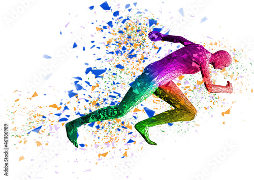 © k_yu, Fototapeta premium カラフルなしぶきを上げるスプリンターの3dイラスト