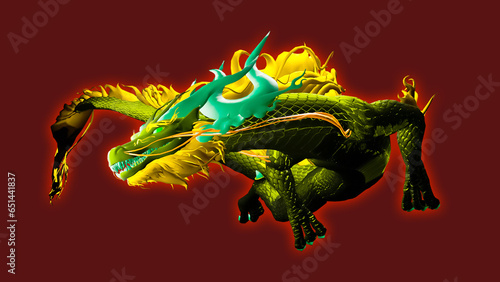 Fototapeta premium 干支の3D辰がひねりながら大きく飛び出す