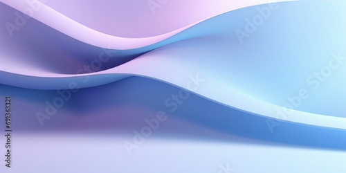© Queso, Naklejka premium 3D風横長背景。淡い紫と水色のグラデーションの曲線的な壁がある抽象的な空間