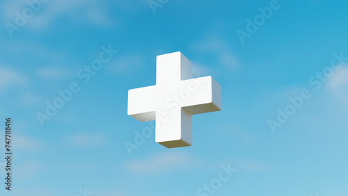 Obraz premium 青空と宙に浮かぶ白い十字。3D(横長)