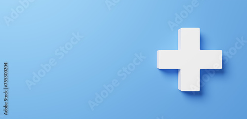 Obraz premium 青い背景に白い十字。俯瞰。コピースペース。3D(横長)
