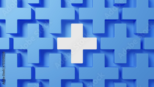 Fototapeta premium 青い複数の十字の中に一つの白い十字。俯瞰。3D(横長)