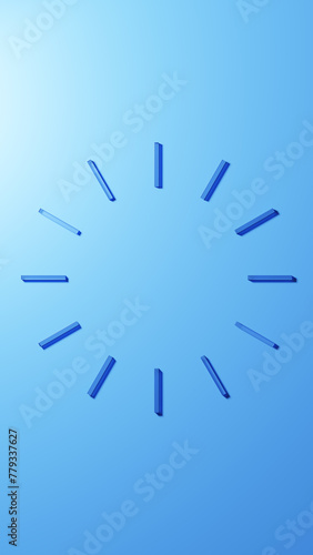 Obraz premium 青背景に時計のように並んだ立方体のガラス。俯瞰。3D(縦長)