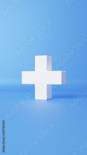 Obraz premium 青い背景に白い十字。3D(縦長)