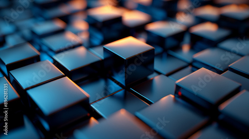 © coma3d, Obraz premium 黒のキューブの3D、テクノロジーのイメージ