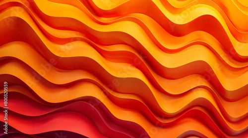 © Aisyaqilumar, Fototapeta premium 3D abstract background with orange and red waves. Paper cut style.