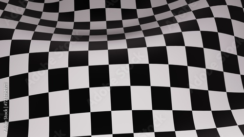 © waylan_design, Fototapeta premium 3d abstract black and white checkered background. Wave glowing neon light flag for race competition sport winning. Retro 80s 90s vintage style.