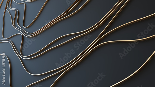© Cg loser , Obraz premium 3d abstract black background and curvy golden lines. 3d rendering