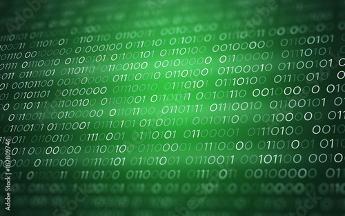 Obraz premium 3D Abstract Green Binary Code Futuristic Information Technology Illustration...