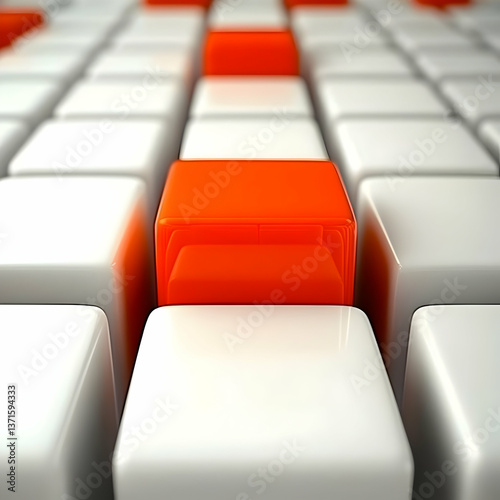 © Tyler, Obraz premium 3D Abstract Illustration Orange Cube Blocks Repeating Over White Background