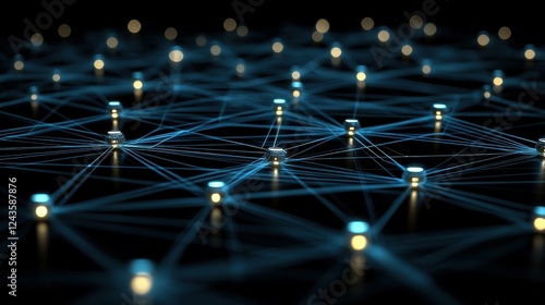© DARIKA, Fototapeta premium 3D abstract network background with dynamic glowing lines, interconnecting nodes, and futuristic elements, ideal for illustrating digital networks, cloud computing, and virtual communication.