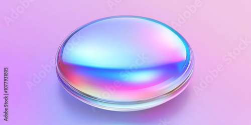 © Ashy studio, Fototapeta premium 3D abstract planet in space with stars clouds night holographic iridescent glossy glass texture in futuristic background. cyberpunk solarpunk disco musical club bar psychedelic pink purple blue shiny