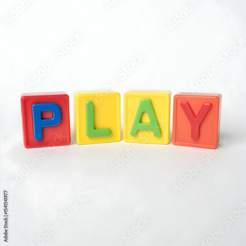 © Nazmin, Fototapeta premium 3D alphabet blocks spelling PLAY on a crisp white background for educational and playful concepts