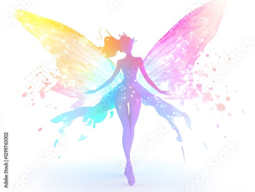 © Humanology, Fototapeta premium 3D animated fairy with shimmering pastel wings and a luminous aura