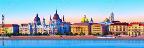 © Brian, Fototapeta premium 2d animation budapest hungary downtown skyline -