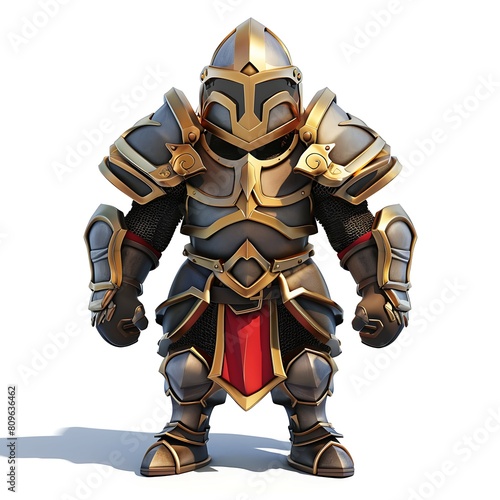 © Bot.x, Fototapeta premium 3D armored knight cartoon style illustration Isolated white background game asset 3d illustration.