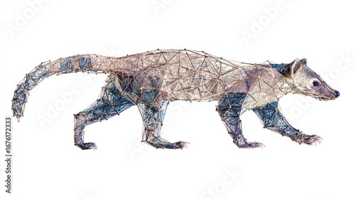 © ember10, Naklejka premium 3D art an animal rendered in polygons and lines against white background