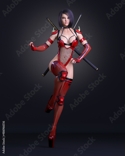 © vladnikon, Naklejka premium 3D assassin woman render.