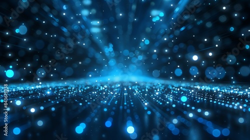 © Yahor Shylau , Naklejka premium 3D background blue with glowing lights.