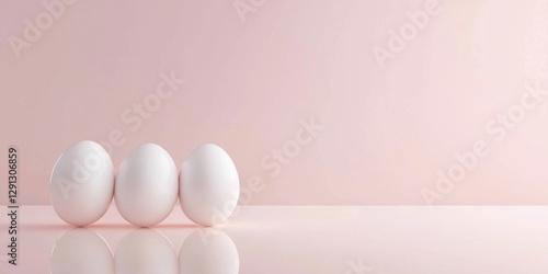 © Svitlana, Fototapeta premium 3d background minimalistic mockup with space for text, elegant white ceramic Easter eggs with soft reflections