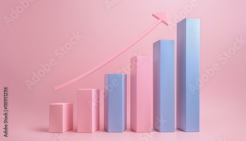 Fototapeta premium 3D bar graph showing market growth rate, 3D display of rising graph