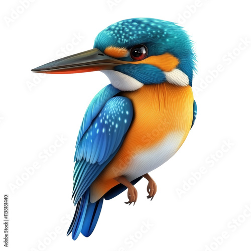 Obraz premium 3D Beautiful kingfisher cartoon style, isolated on a transparent background