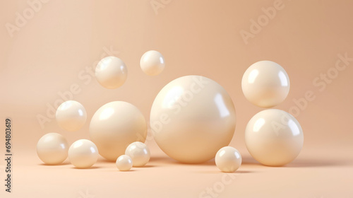 Fototapeta premium 3D beige spheres of different sizes and transparency. Pastel colour palette....