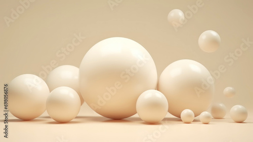 Fototapeta premium 3D beige spheres of different sizes and transparency. Pastel colour palette....
