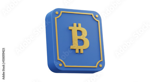 © Jin, Obraz premium 3D Bitcoin Currency Golden Symbol a Digital Crypto Coin on Blue
