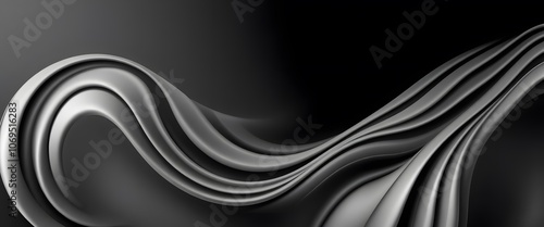 © Hamza_Latif, Obraz premium 3D black and white abstract wave background wallpaper created with generative AI