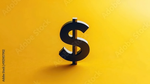 © letter, Obraz premium 3d black dollar sign standing on bright yellow background with soft shadow conveying prosperity and confident optimism
