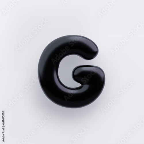 © TanyaFox, Fototapeta premium 3D Black letter G with a glossy surface on a white background .
