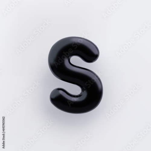 © TanyaFox, Naklejka premium 3D Black letter S with a glossy surface on a white background .