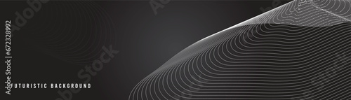 © Parbat, Naklejka premium 3D black luxurious techno abstract background overlap layer on dark space with lines shape decoration.