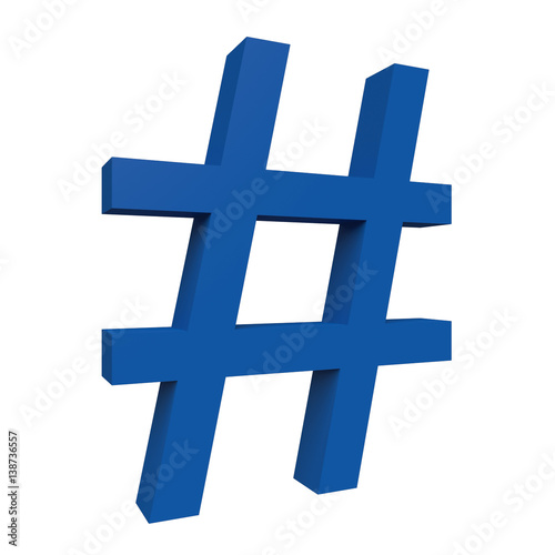 © cbies, Fototapeta premium 3d Blue Hashtag Sign Isolated On White Background, 3d illustration