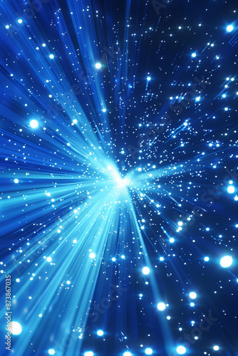 © Jiranun, Naklejka premium 3d blue light beam ray background.