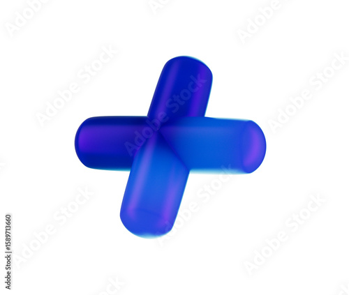 Obraz premium 3D Blue plus sign with a glossy, gradient finish, featuring smooth, rounded...