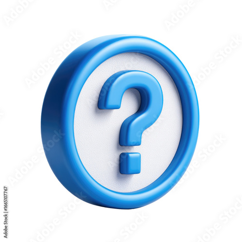 © Carakde, Fototapeta premium 3D blue question mark icon in a white circle, with a blue border. Circular, rounded, bold