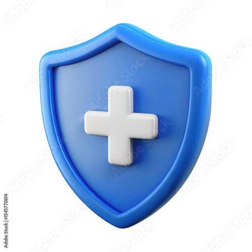 © MdKamran, Fototapeta premium 3d blue shield with white cross icon isolated on transparent background