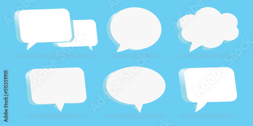 Fototapeta premium 3D Blue Speech Bubble Collection set, 3d white chat icon set collection on blue background
